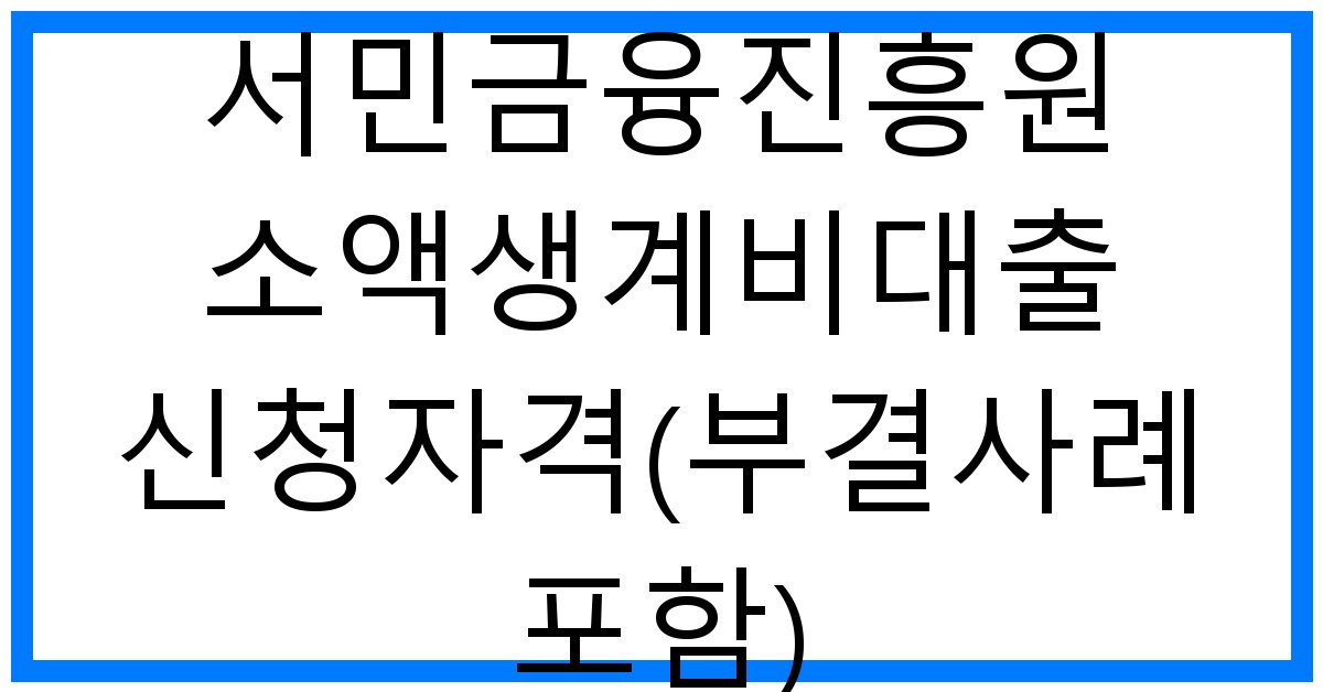 안녕하세요! 요즘 경제적 어려움을 겪고 계신 분들이 많아 보입니다. 이러한 상황에서 서민금융진흥원의 소액생계비대출은 큰 도움을 줄 수 있는 제도입니다. 이 글에서는 소액생계비대출의 신청 자격, 신청 절차, 그리고 부결 사례에 대해 자세히 알아보겠습니다. 궁금하신 분들은 끝까지 읽어주세요!